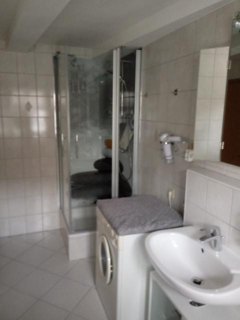 Bad mit WC, Dusche, Waschbecken und Waschmaschine